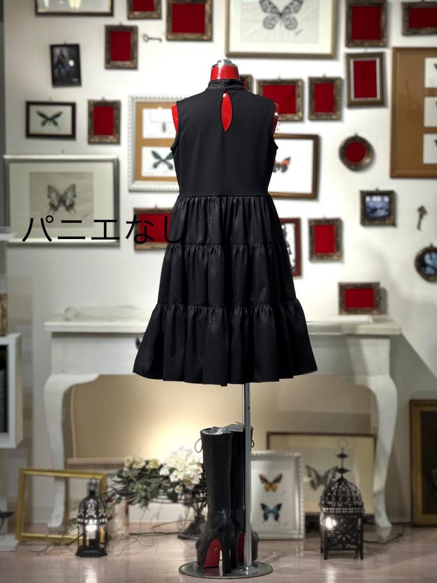 首元とスカートには動く毎に控えめな輝きを感じる生地を使用してします