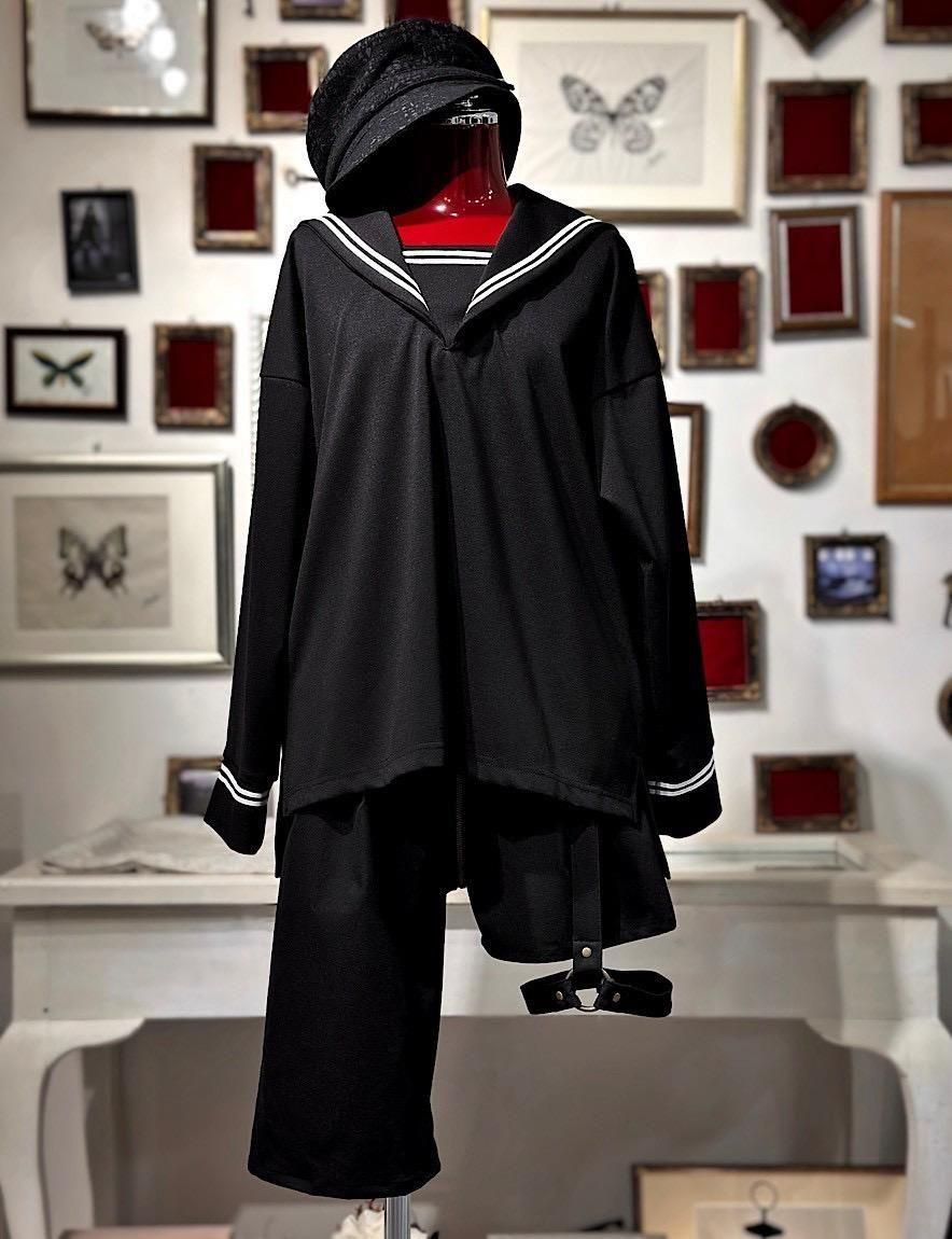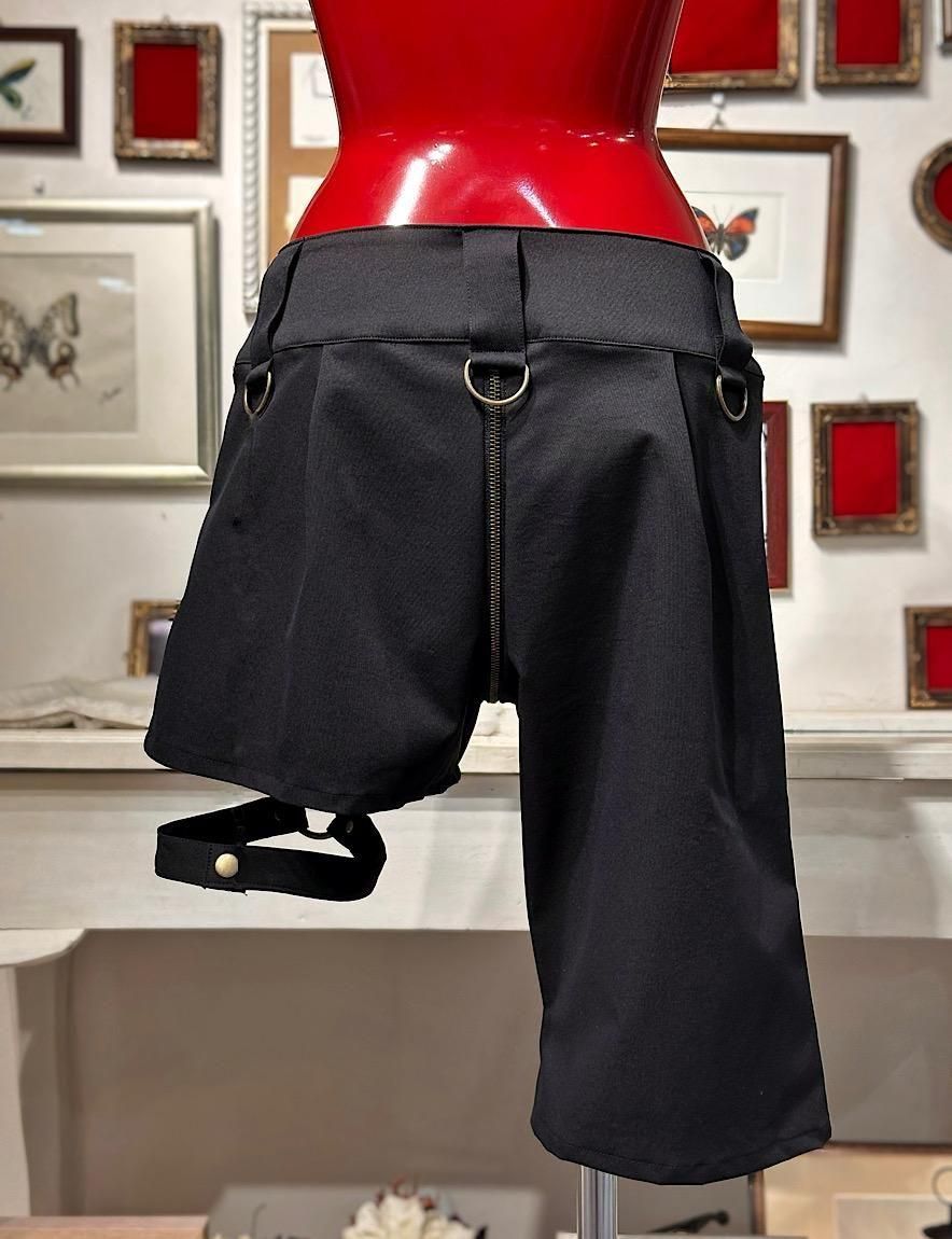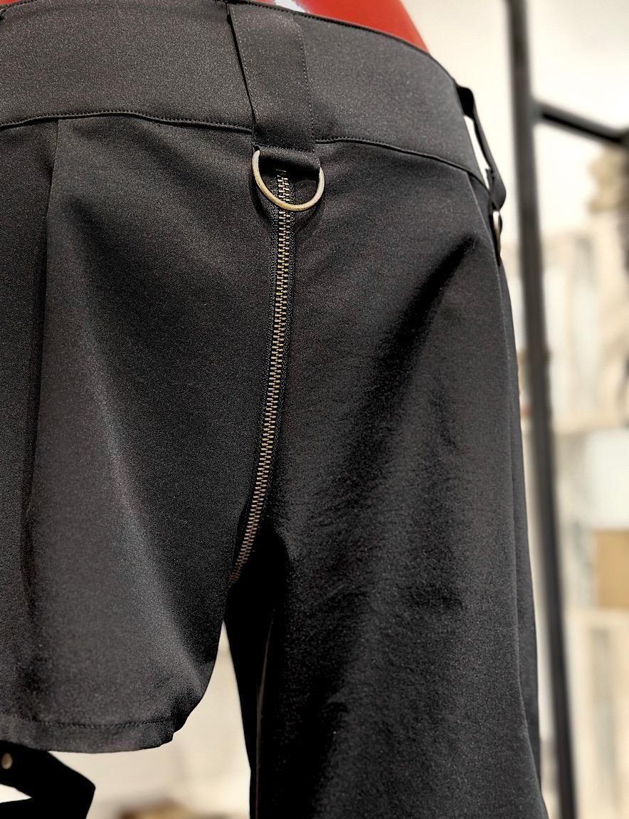 左右のパンツ丈が異なるアシンメトリーデザインのパンツ