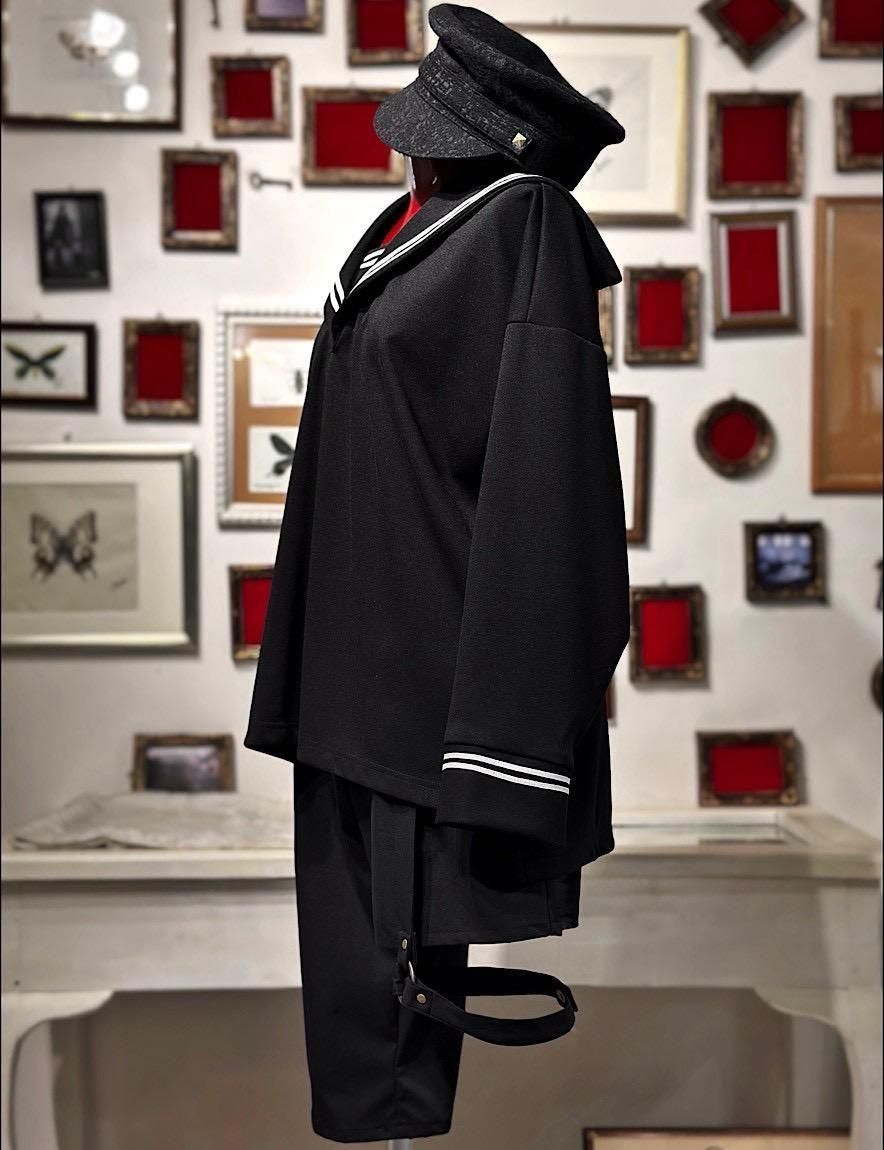 ヒップラインまで伸びたファスナーが個性的な印象に