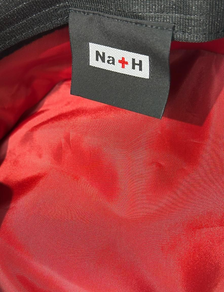 フロントについた共布のベルトがさり気ないアクセントになったマリンキャップ