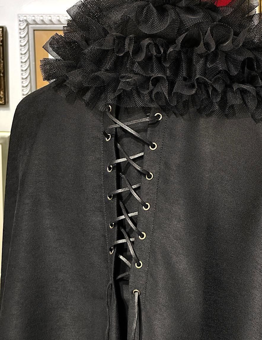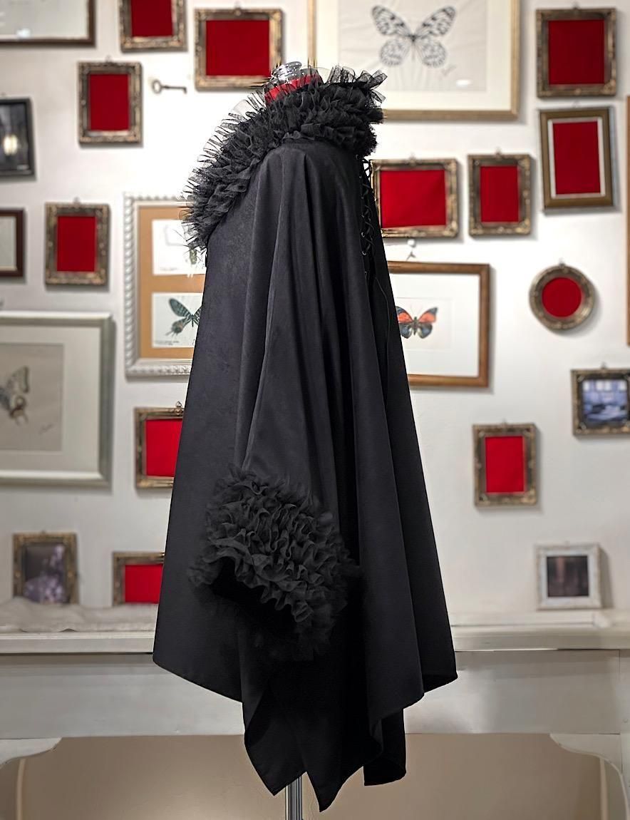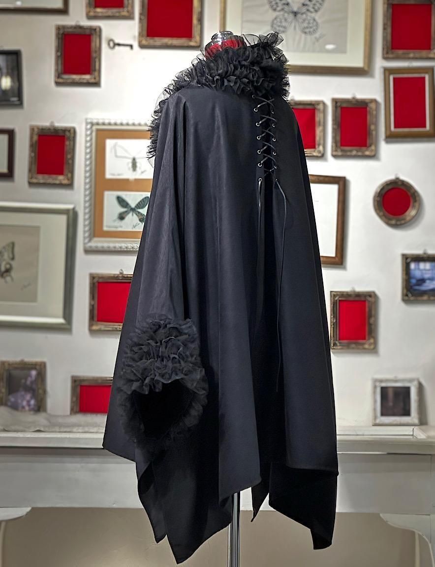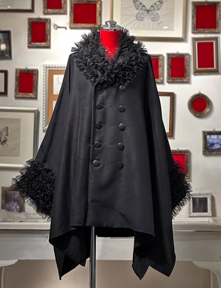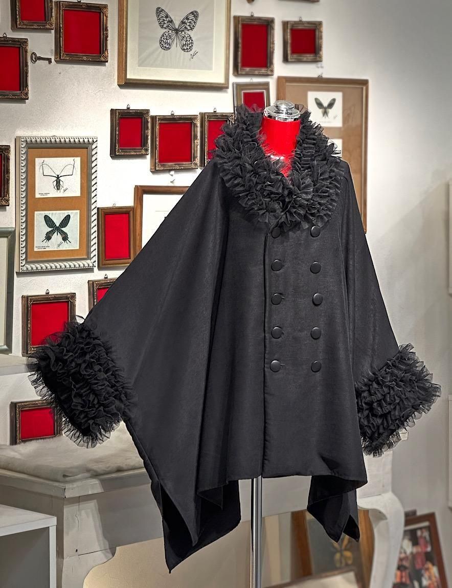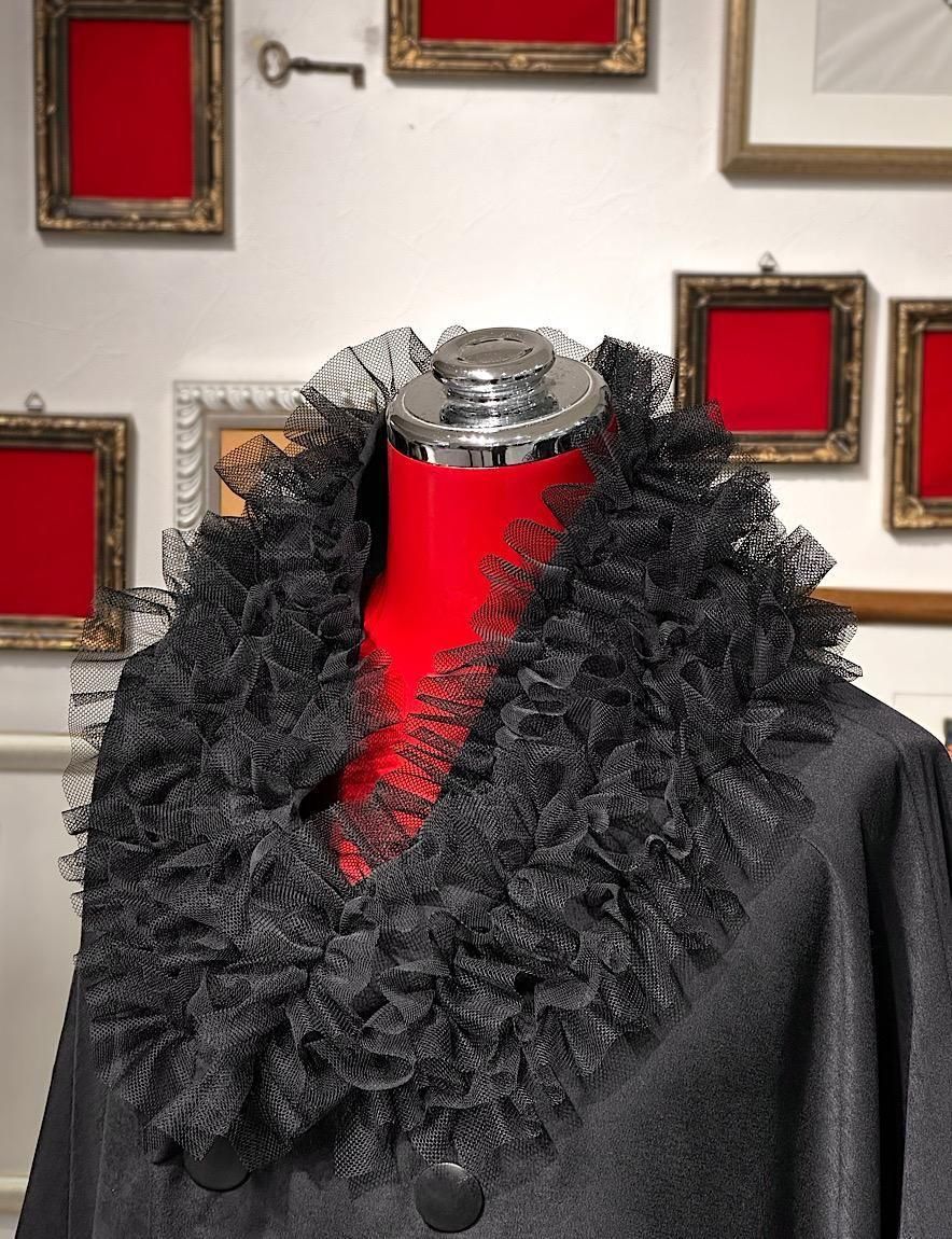 首から胸元、袖口にはチュールのフリルをふんだんにあしらい華やかさを