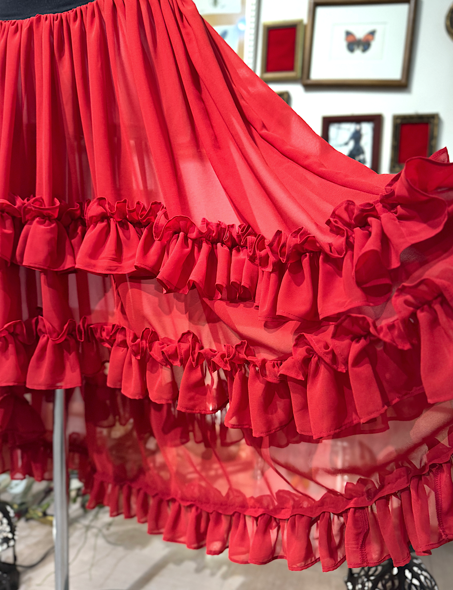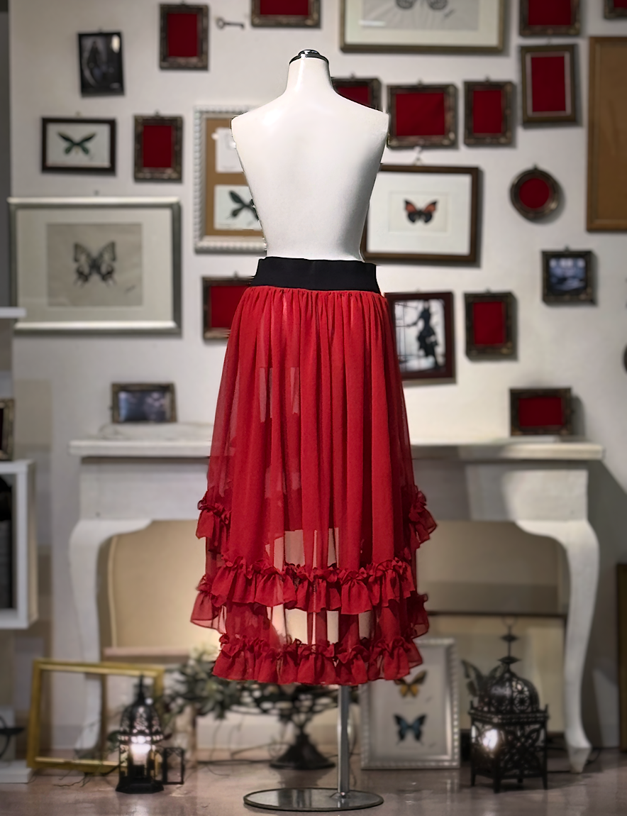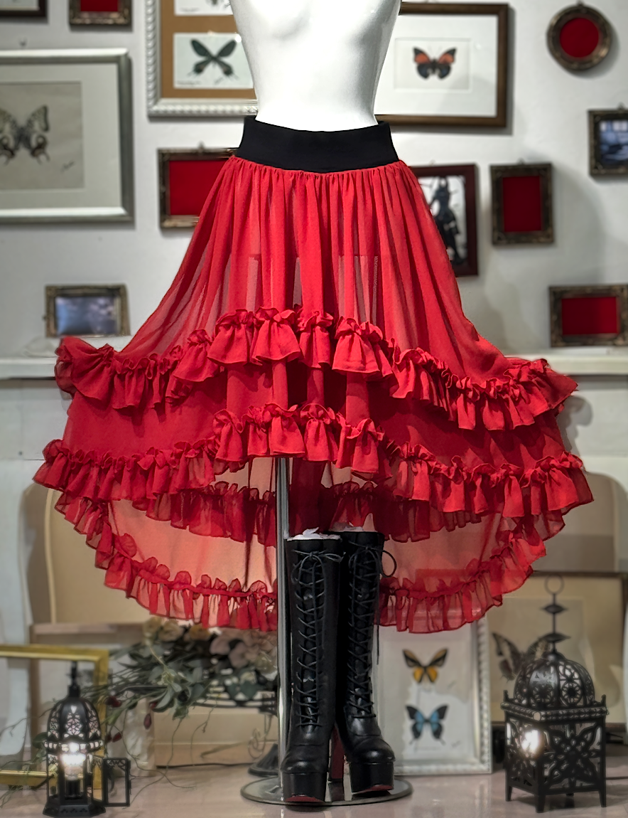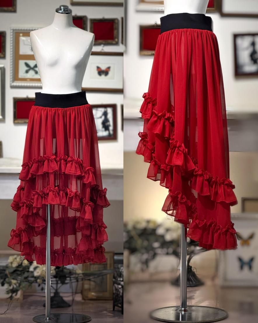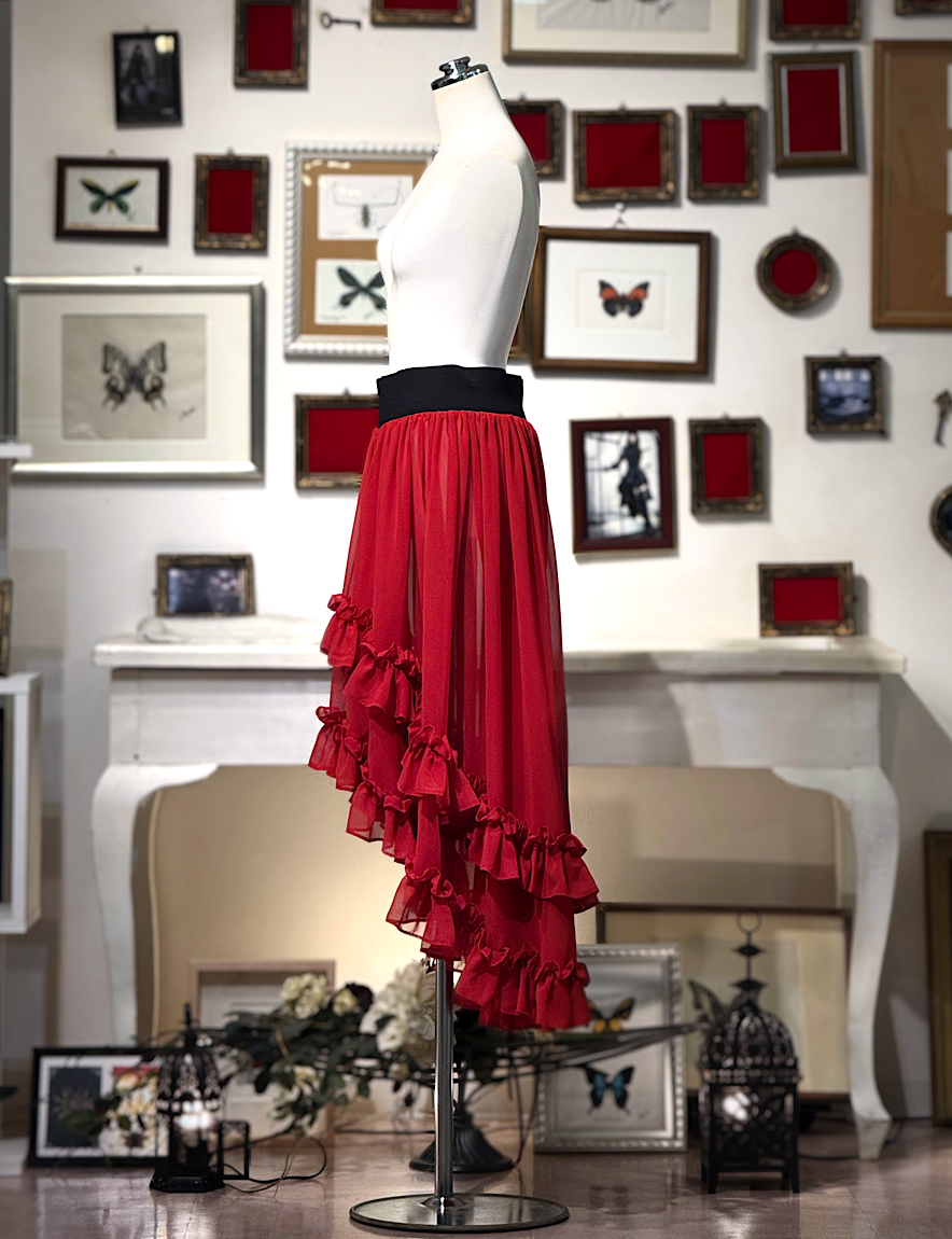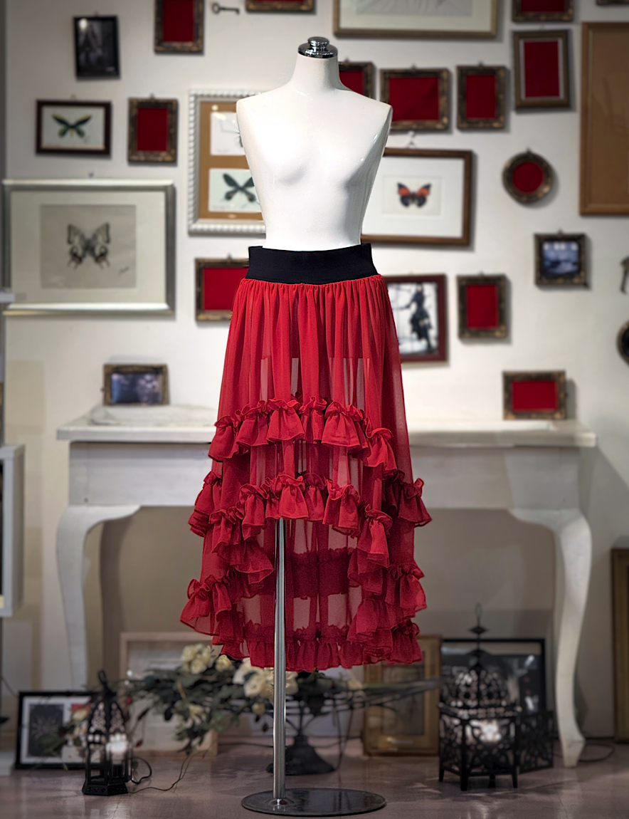 シフォン素材で仕立てた後ろ下りのシアースカート